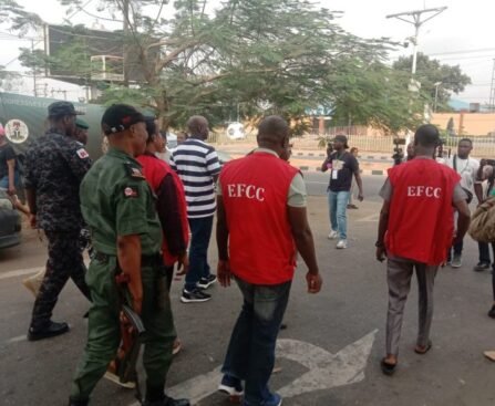 EFCC officials storm Tinubu’s polling unit EFCC officials were seen at the polling unit of the APC presidential candidate, Bola Ahmed Tinubu, this morning. They arrived at polling unit 085, Ward 3, Sunday Adigun, Alausa, Ikeja, Lagos State. They were seen parading around the place. No one knows what prompted their presence, and they also […]