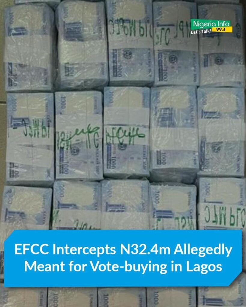 The Economic and Financial Crimes Commission (EFCC) has intercepted a a sum of ₦32.4 Million alleged to be for vote