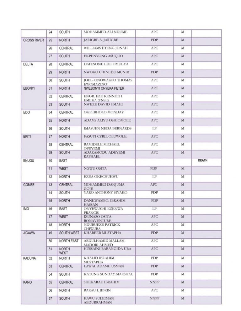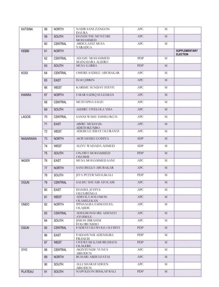 However, eight names are missing in the recently released list as the commission noted that supplementary elections will be held in the affected senatorial districts.